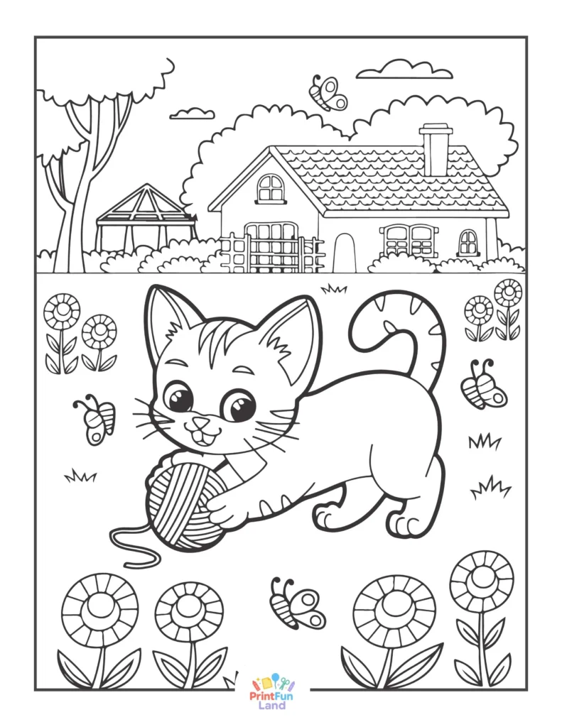 This free cat coloring pack includes 36 adorable cat-themed pages, all in clean black-and-white outline style, such as: