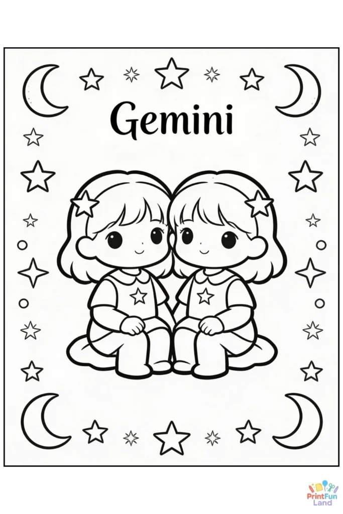 Each page features a cute stylized zodiac character with stars, moons, and celestial patterns—perfect for crayons, markers, dot markers, or colored pencils. See the previews below!